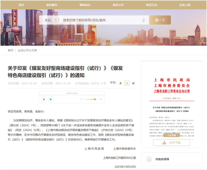 实体商业增长新机遇上海推动银发友好型商场、银发特色商店建设